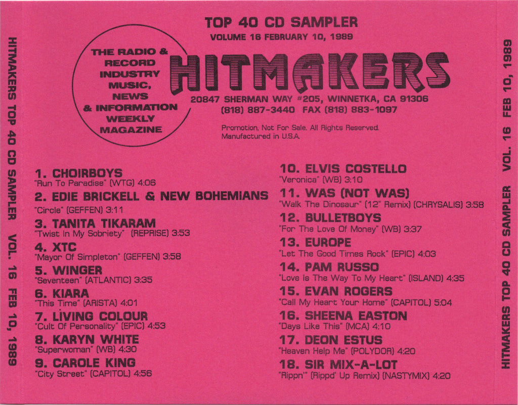 Hitmakers Top 40 CD Sampler Vol. 16, Feb 10, 1989 [CD Album]